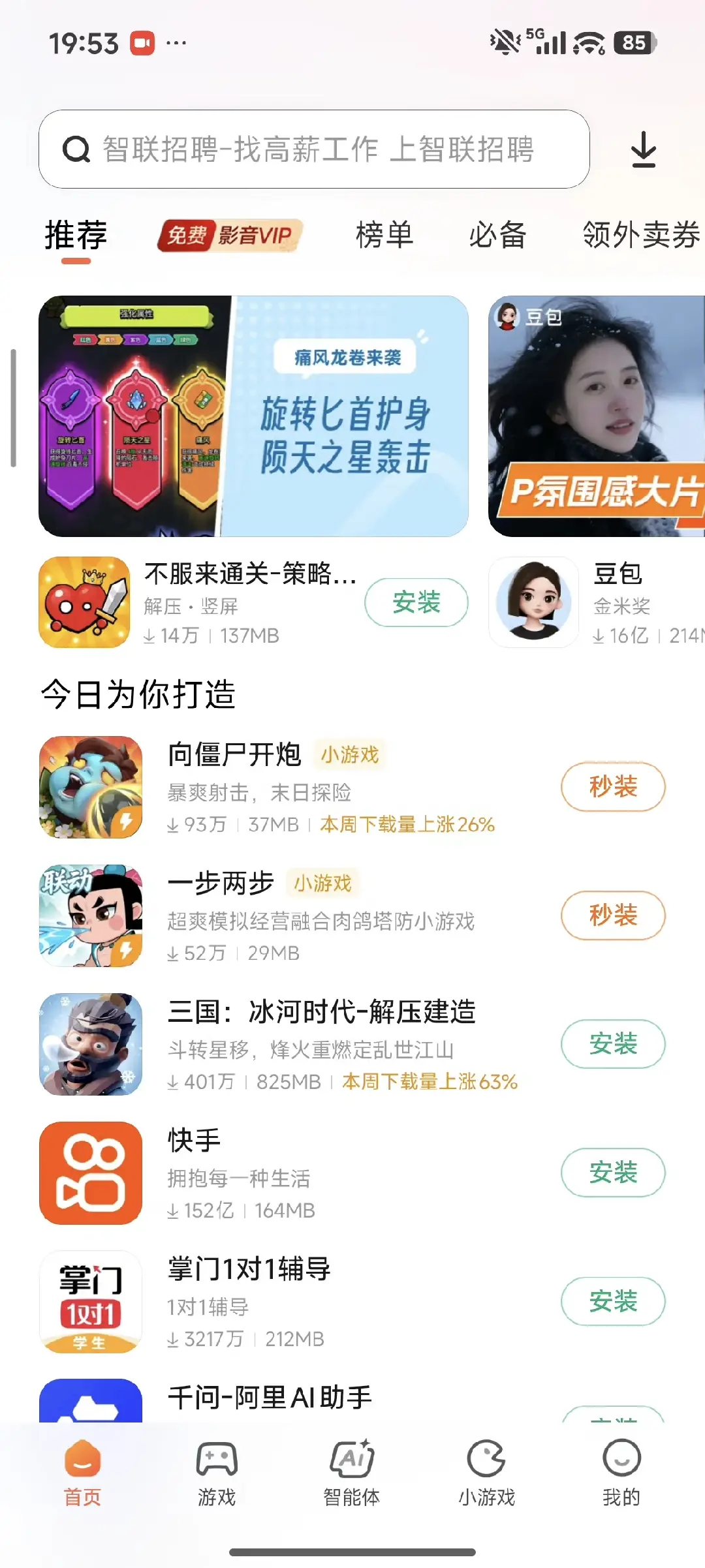 首页推荐位配合快游戏专区,触达海量优质游戏玩家,助力精细化用户运营。