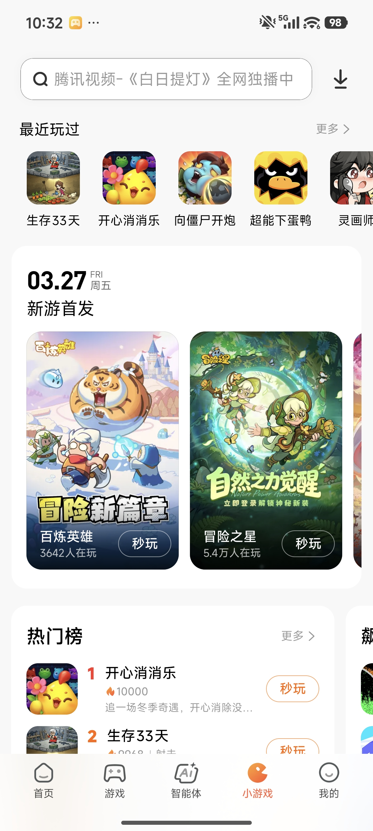 游戏 tab 专属“小游戏”栏目,共享亿级用户,轻松完成高效曝光转化。